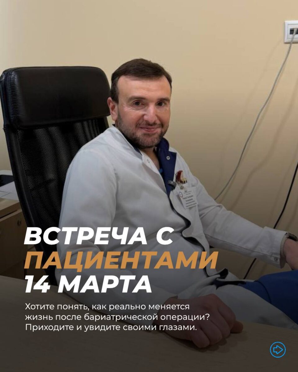 … но так и не задали свои вопросы врачу лично? На консультациях я часто слышу почти одни и те же вопросы: ❓растянется ли желудок? ❓а точно ли я похудею после операции? ❓какие последствия могут быть? ❓как потом жить и питаться? И ещё очень частая проблема — людей с ожирением часто запугивают близкие. Бывает, что поддержки нет совсем. И человек остаётся со своими страхами один на один. Именно поэтому мы организовали встречу пациентов в Москве, где спокойно обсудим все интересующие вопросы. Вас ждут: — врачи и психолог — общение с теми, кто уже прошёл этот путь — и поддержка для тех, кто ещё не может решиться Иногда один живой разговор снимает больше страхов, чем 100 постов. Это не потоковое мероприятие. Количество мест ограничено. 📍 Москва, конференц-зал МКНЦ им. А.С. Логинова 🗓 14 марта 🕛 12:00 Участие бесплатное. Заполняйте анкету для регистрации: https://forms.gle/FReWfJKwVx5D3Ewv6