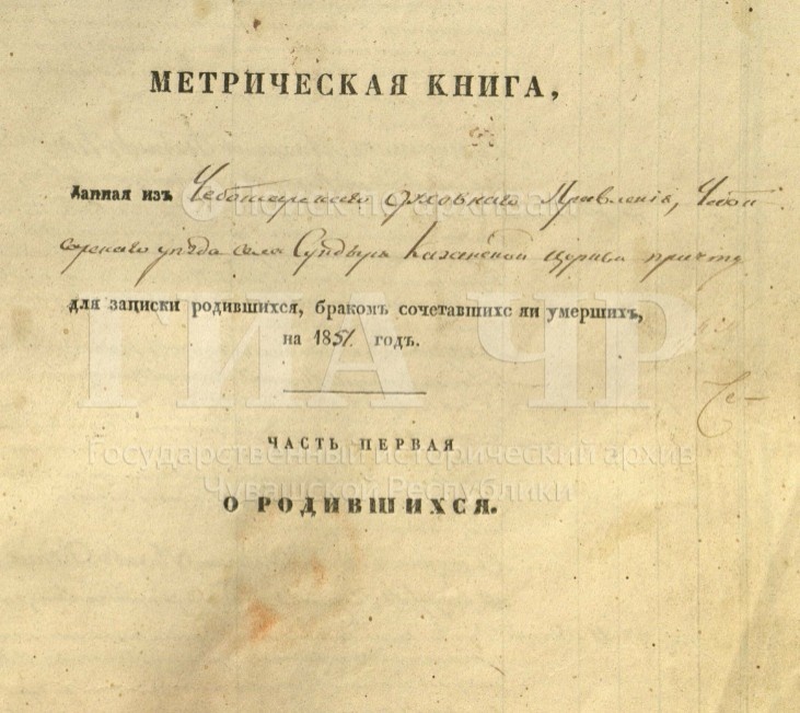 Метрические книги о рождении, браке и смерти за 1851 г. ГИА Чувашской Республики (ГИА ЧР), фонд № 225, опись № 3, дело № 120, стр. 1386 скан. Метрическая книга, данная из Чебоксарского духовного правления Чебоксарского уезда села Сундыря Казанской церкви причту для записки родившихся, браком сочетавшихся и умерших, на 1851 год. Часть первая. О родившихся. Стр. 1391 скан. Февраль. № 9. 19 числа родилась. 19 числа крещена. Евдокия. Родители: Села Сундыря казенный крестьянин Григорий Осипов Бандин и законная жена его Евдокия Петрова, оба православного вероисповедания. Восприемники: Означенного Григория Осипова отец Осип Михайлов Бандин и онаго ж Григория Осипова брата Петра Осипова жена Матрена Ефремова. Таинство крещения совершил Михаил Иоаннов Кедров. Дьячек Михаил Феодоров Парисов. Пономарь Прокопий Борисов. https://yandex.ru/archive/catalog/5bbface7-7e8c-47fa-88da-61ca80502a85/1391