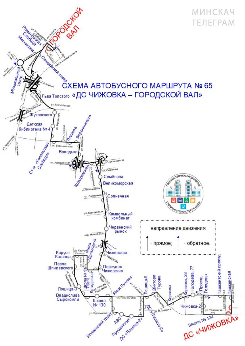 С 3 марта автобус №65 поедет до ДС «Чижовка». Схема движения по улицам Могилёвской, Льва Толстого и Мясникова сохранится, а название изменят на «ДС „Чижовка“ – Городской Вал». Ранее планировалось сократить маршрут №163 «Сухарево-5 – Воронянского» до станции метро Немига, но от этого решения отказались — автобус продолжит работать по прежней схеме и расписанию. ✔️ Минскач • Подписаться