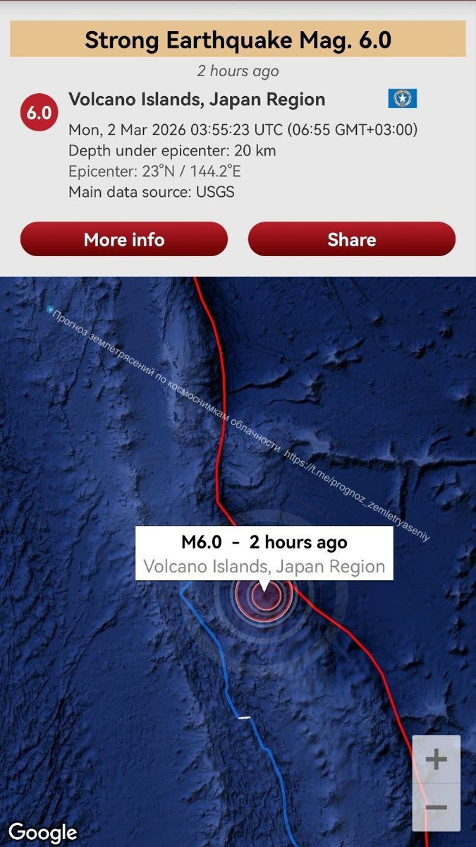 ОСТИ от события М6.0 на северо-востоке Филиппинской плиты наблюдался за часы до землетрясения (фото 2)