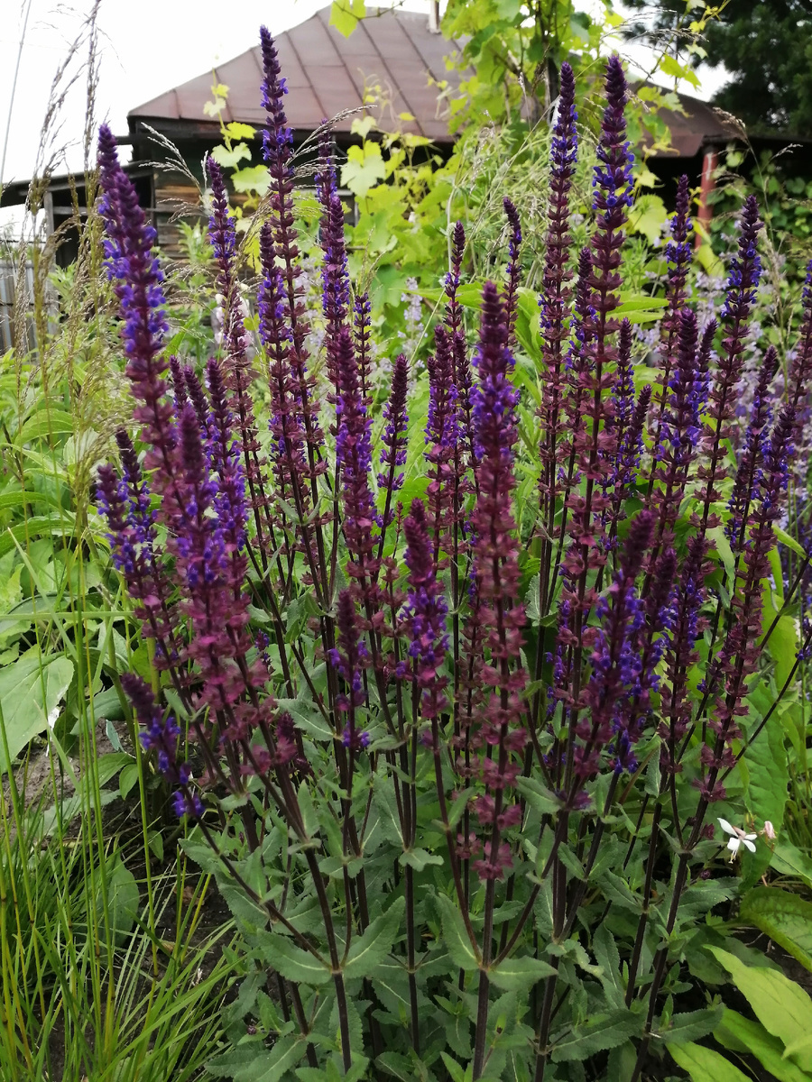 И имя ему ... неприхотливость. Да, вот так. При том, что в саду полно растений-пограничников, растений, которые требуют танцев и часто укрытия но... не здесь. Это все где-нибудь на горке, под вишнями и в прочих "злачных" местах. В природном же цветнике царит жесткий почти естественный отбор. Не хочешь жить? Тебе здесь не рады. Хочешь быть накромленным, обихоженным, обласканным? Тебе не сюда. Здесь выживают те растения, которые без подкормки выглядят лучше, как, например, шалфеи. Не кормлю никого, здесь это принцип. Бедная почва, в которую еще и песок подмешивается. И зола - у меня тут, как-никак, перовскии растут. Которым чем беденее почва, тем, похоже, приятнее. Пожалуй, единственная небольшая несостыковка - дербенники любят воду, остальные здесь скорее наборот предпочитают климат посуше. Ну что ж, дербенникам приходится подстраиваться. Я, кстати, не вижу, чтобы им это слишком вредило. Равно как и полив перовскиям. Ну не получается у меня поливать точечно - чаще всего. Еще одно ва
