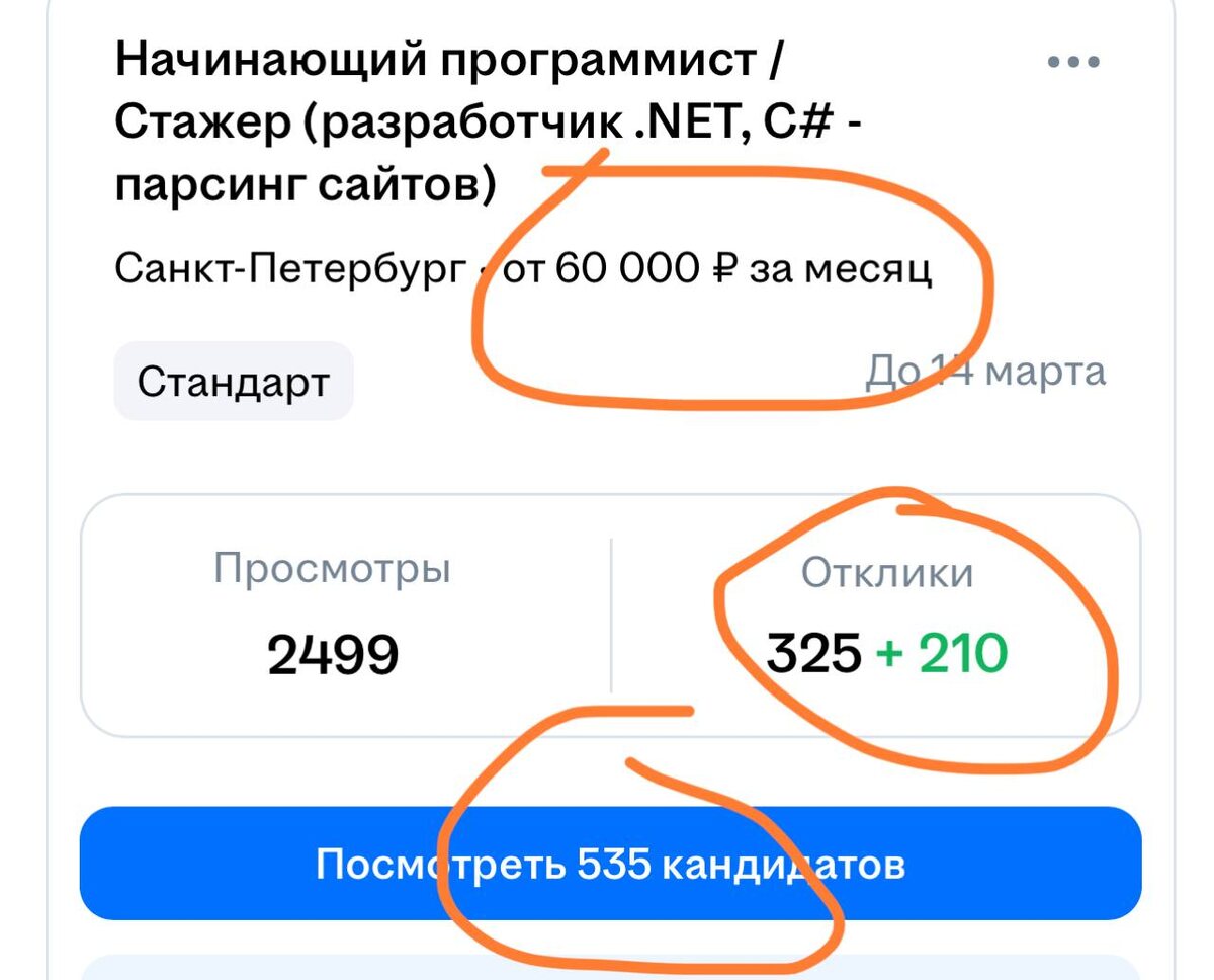Закрыли вакансию. Вот цифры по Питеру. С запретом на авто отклики и фильтр по городу.