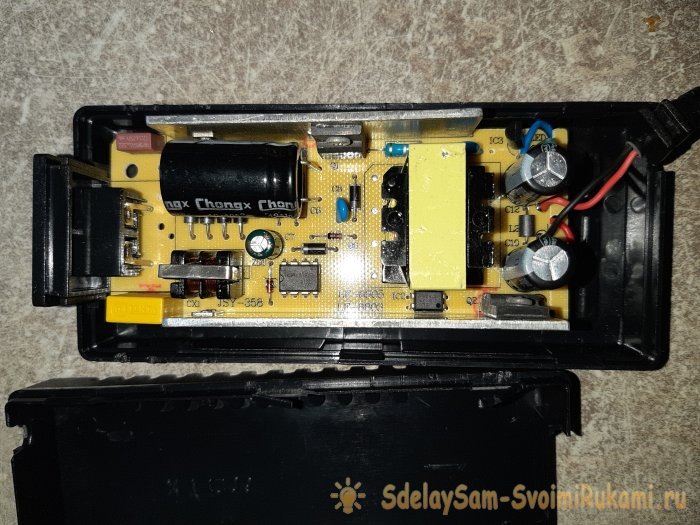 Выходное напряжение импульсного источника питания можно легко изменить или даже значительно скорректировать. Например, если у вас есть блок питания на 12 В, вы можете настроить его на любое значение в диапазоне от 4 до 19 В. Однако в моем случае требуется лишь небольшая корректировка, и вот почему. Я приобрел блок питания на 12 В, но на практике он выдает 12,5 В. Мне необходимо питать светодиодную ленту, и даже незначительное превышение напряжения приведет к значительному увеличению мощности, учитывая вольт-амперные характеристики светодиодов. Это вызовет излишний нагрев ленты и нерациональное потребление энергии. Итак, разбираем корпус блока. В моем случае все просто - он был на защелках и легко отщелкнулся. Если у вас корпус заклеен, то ЭТА инструкция для вас. Сейчас объясню суть. Все импульсные блоки питания, представленные на современном рынке, имеют схожую конструкцию. В качестве стабилизатора в них используется микросхема «TL431» или её аналоги. Не буду вдаваться в технические де