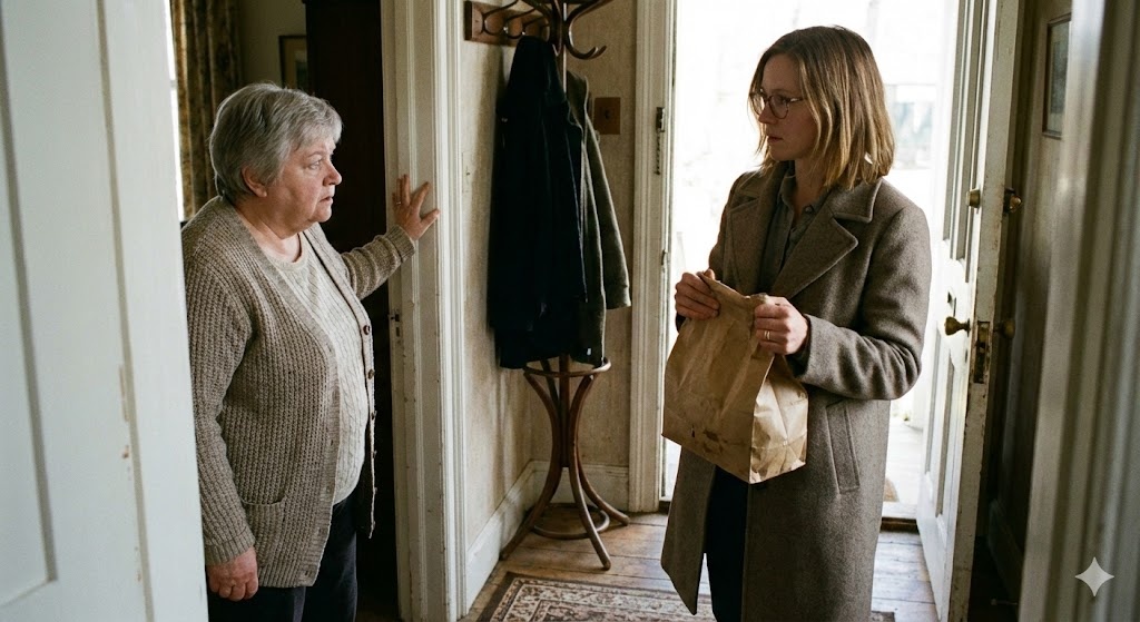 Римма ждала на пороге — в хорошем платье, с уложенными волосами. В руках — пакет с печеньем.