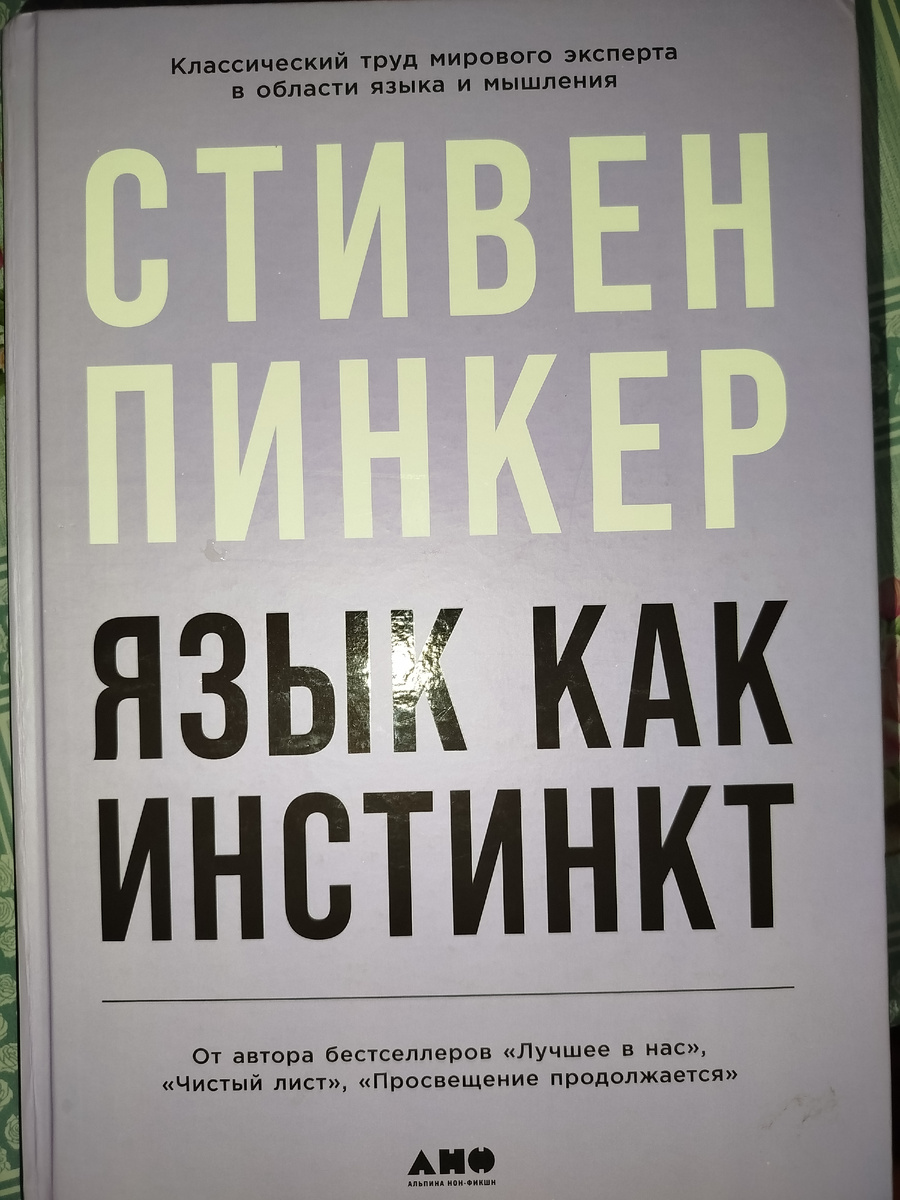Больше года назад, когда я была в Сочи, один читатель моего канала написал - вы любите книги, хочу сделать подарок, какую книгу вы хотите....А я в то время, читая книгу по психотравмам, наткнулась в ней на отсылку к книге Стивена Пинкера "Язык как инстинкт", где говорилось, что взрослый человек уже не сможет выучить иностранный язык без акцента. Мне захотелось ее почитать. И я сказала ему об этой книге....