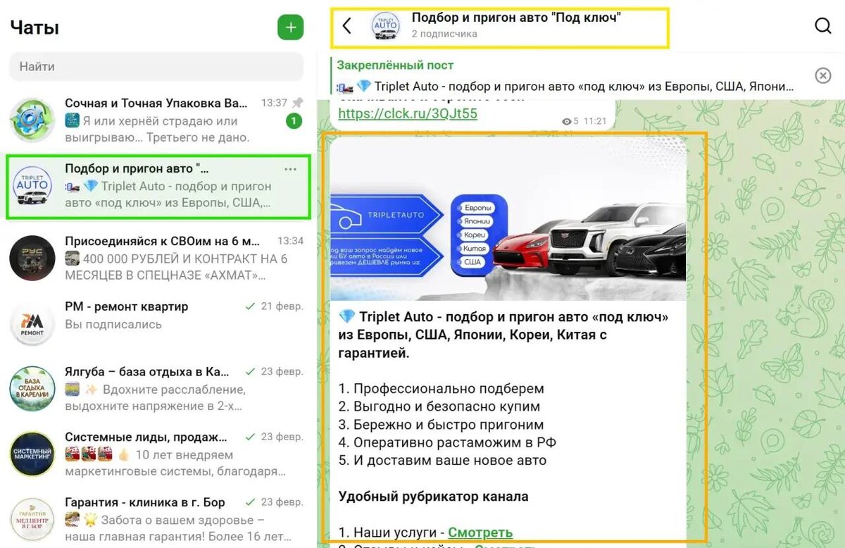 👍 Упаковали канал МАХ для подбора и пригона авто