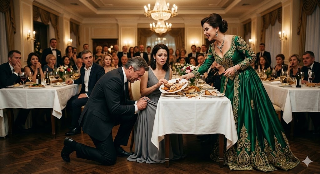 В просторном помещении повисла тяжелая, звенящая тишина, в которой было слышно лишь прерывистое дыхание гостей. Смех Марины оборвался так резко, словно кто-то невидимой рукой перерезал натянутую струну. Она медленно опустила взгляд. Тарелка с объедками выскользнула из ее ослабевших пальцев и с громким стуком разбилась о гладкий деревянный пол. Куски запеченной птицы и крошки хлеба разлетелись в разные стороны, пачкая подол ее дорогого платья. Но никто не обратил на это внимания. Все взгляды присутствующих были прикованы к нам троим.