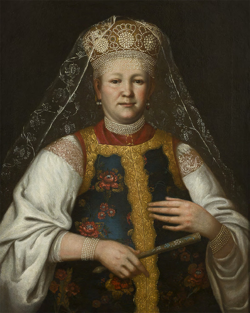 У князя Андрея Куракина беглые холопы умыкнули среди прочего «кокошник камчатный лазоревый низаный, цена 2 рубли, восемь кокошников камчатные и тафтяные с галуны серебряными, цена 3 рубли».