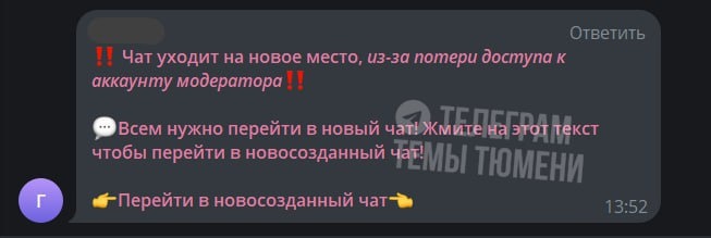 В рабочие и локальные чаты рассылают псевдоофициальные сообщения о его переезде из-за замедления мессенджера. Жители без задней мысли переходят по ссылке, которая ведет в диалог с ботом — тот запрашивает номер телефона и код из СМС для подтверждения. После отправленных данных аккаунт улетает мошенникам. Будьте бдительны и предупредите близких. 🆕 Злой Тюменец (блог админа) 👍 Подпишись ЧП Тюмень 🤩 Читать нас в MAX