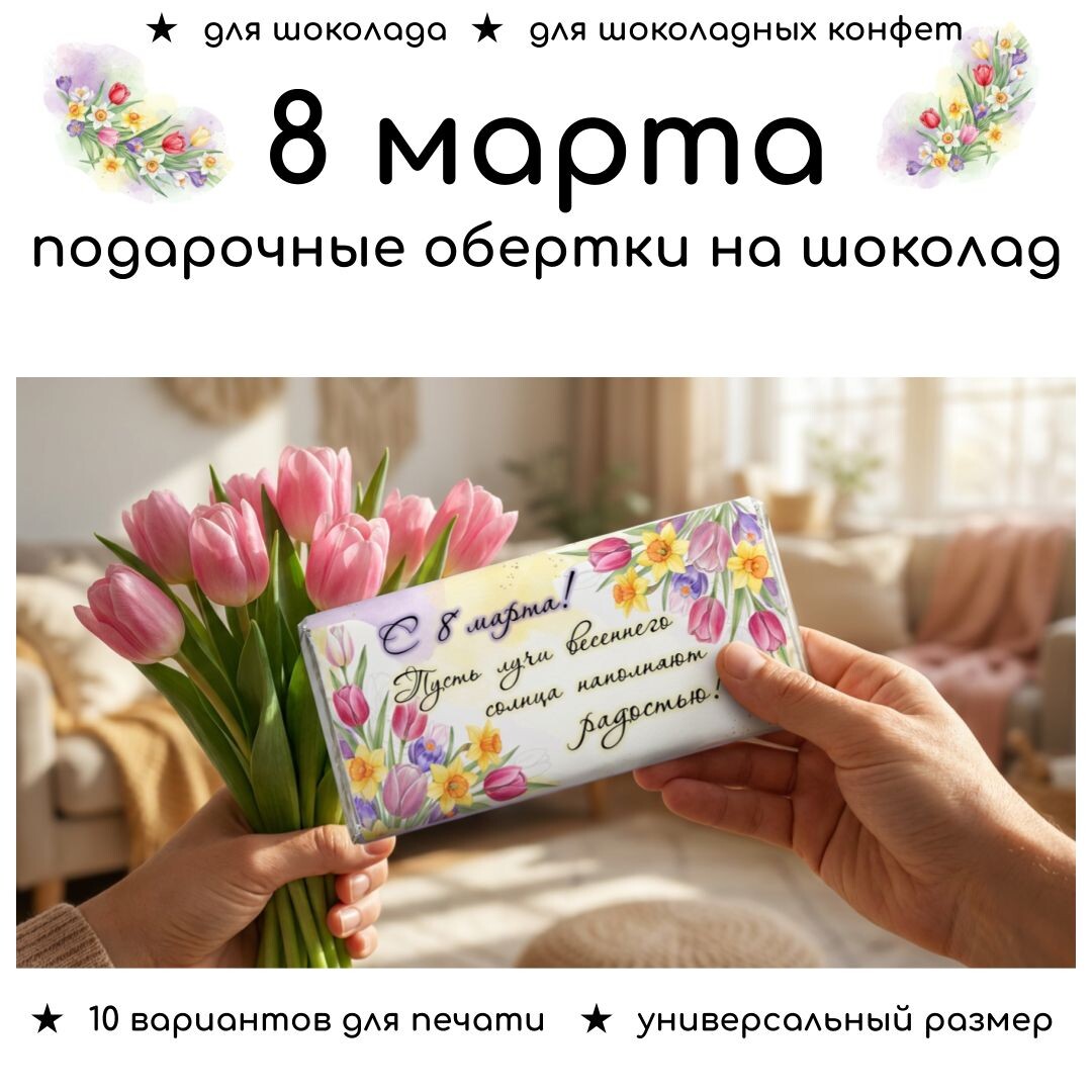 Обертки на шоколад к 8 марта. Подарочные обертки для шоколада и шоколадных конфет на 8 марта.
