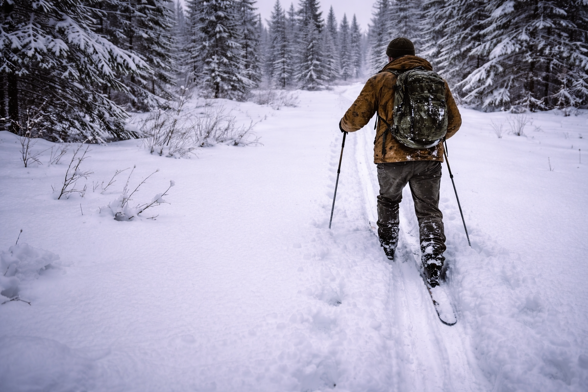 Лыжня зимой — это не просто след. Это экономия сил, уверенность, ритм. Когда несколько недель ходишь одним маршрутом, снег утрамбовывается, подъёмы становятся легче, повороты — привычными. Ты уже не думаешь о каждом шаге. Ноги сами находят правильный угол, дыхание выстраивается под известный рельеф. В тот сезон я протоптал лыжню к дальнему участку ещё в начале декабря. От избы через ельник, затем по старой просеке, дальше — через замёрзшее болото и на пригорок, где стоят ловушки. Маршрут отработанный, проверенный. Даже в сумерках можно идти без колебаний. Ночью пришла метель. Сначала лёгкий снег, потом плотный, с боковым ветром. К утру всё вокруг стало единым белым полем. Стволы деревьев стерлись в молочной дымке, просека исчезла, болото стало ровной равниной без единого ориентира. Я вышел из избы и остановился на пороге. Лыжни не было. Там, где ещё вчера тянулась чёткая колея, лежал ровный слой свежего снега. Ни впадины, ни намёка на прежний путь. Можно было отложить выход, но участо
