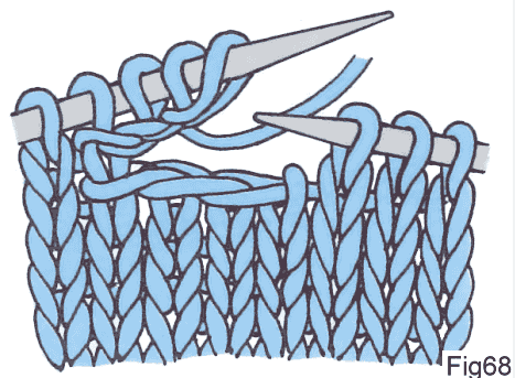 Сделайте петлю из рабочей нити на указательном пальце и накиньте её на правую спицу (накид-петля). Повторите еще раз. Теперь на спице снова столько же петель, сколько было в самом начале. - Продолжайте вязать оставшиеся петли ряда.