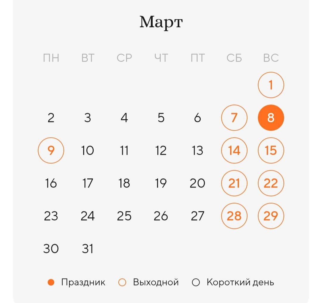 ! ✅ 21 рабочий день — будем продуктивны и целеустремлённы! 💪 ✅ 10 выходных — время перезагрузиться и насладиться весной! 🌸☀️ А ещё — в начале месяца длинные выходные на 8 Марта! 💐 Праздник выпадает на воскресенье, поэтому отдыхать будем целых 3 дня: 📅 7 марта (сб) 📅 8 марта (вс) 📅 9 марта (пн) Используйте эти дни с пользой:🌷 Устройте пикник, если позволит погода! 🧺 Проведите время с семьёй и близкими! 🌷 Или просто выспитесь как следует! 😴✨ Пусть март принесёт вам море радости и вдохновения! 💫 Наш сайт 🔵 Ева в MAX #март2026 #8марта #длинныевыходные #планынамарт