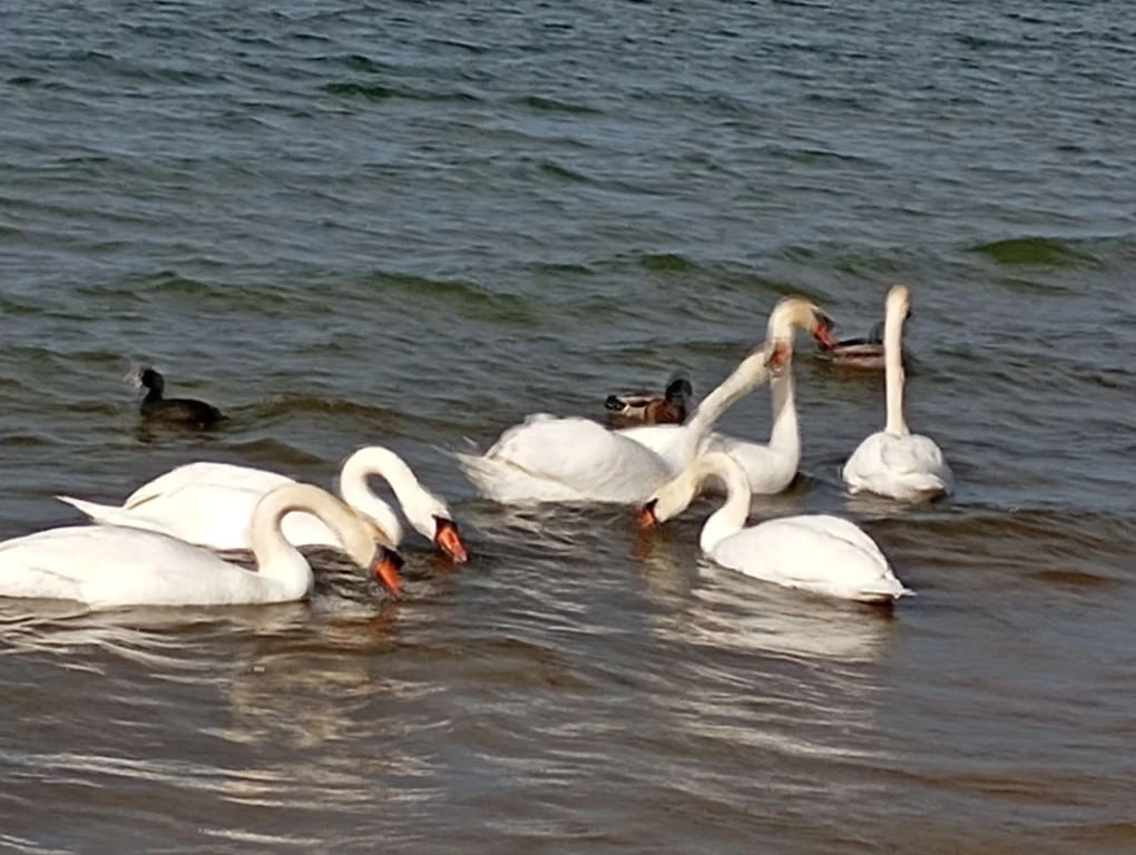 Обстановка сегодня по лебедям на Центральном пляже Анапы🦢