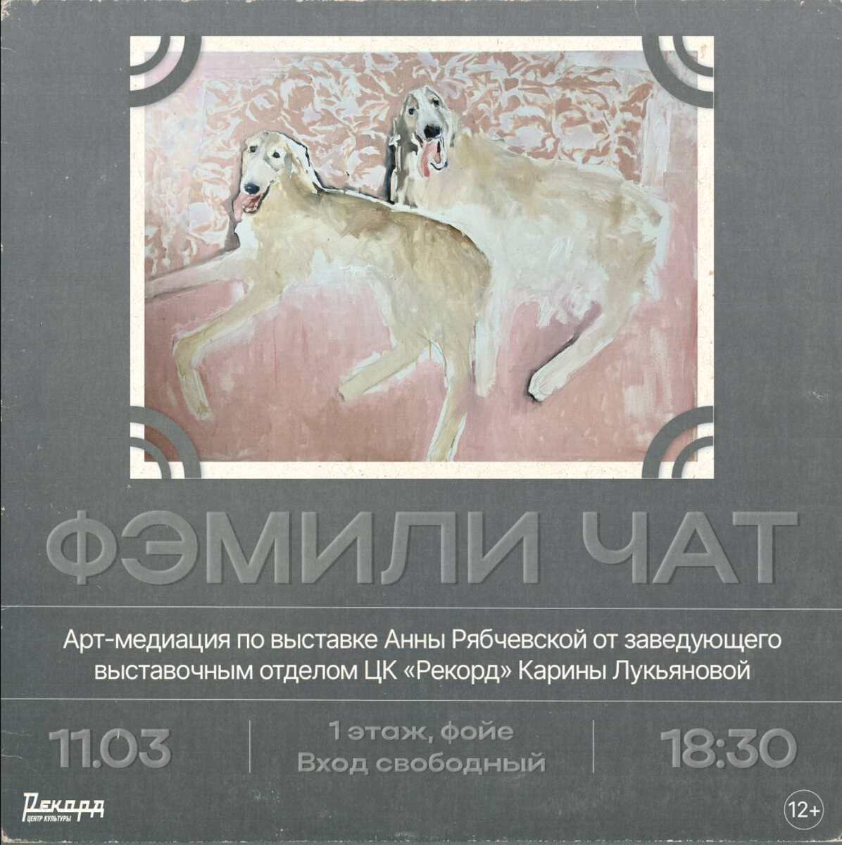 11 марта в 18:30 в Центре культуры «Рекорд» состоится арт-медиация по выставке Анны Рябчевской «фэмили чат