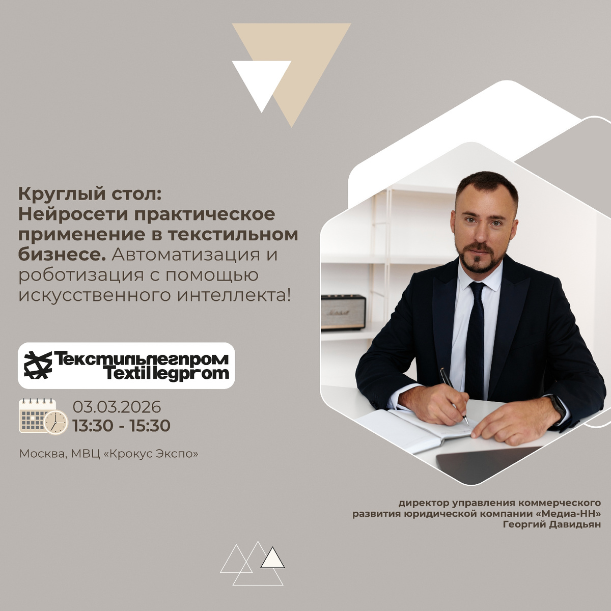 3 марта в рамках международной выставки текстильной и легкой промышленности Текстильлегпром состоится круглый стол на тему: «Нейросети практическое применение в текстильном бизнесе. Автоматизация и роботизация с помощью искусственного интеллекта!» Одним из спикеров мероприятия станет Георгий Давидьян — директор управления коммерческого развития юридической компании «Медиа-НН». Тема выступления: «Дизайны, созданные с помощью ИИ: кому принадлежат права и как не попасть на многомиллионные иски?» Использование нейросетей в текстильной индустрии — от принтов и паттернов до коллекций одежды — становится повседневной практикой. Однако вместе с технологическими возможностями растут и юридические риски. В рамках выступления будут разобраны ключевые вопросы: - Существуют ли правовые основания использовать принты, созданные с помощью ИИ?
