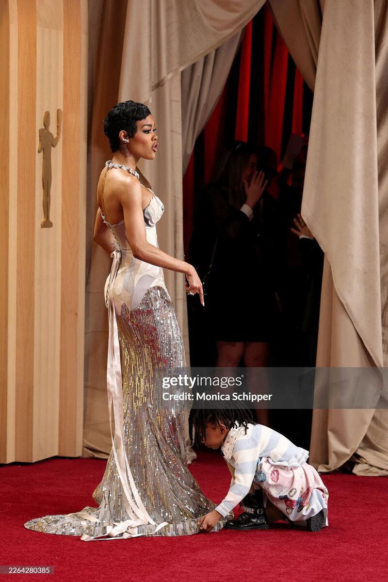 Тияна Тейлор пришла на церемонию в роскошном платье Thom Browne, но сердца украла не нарядом, а тем, как его трогательно поправляла ее