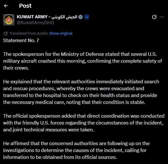 Уже несколько военных самолетов США разбились в Кувейте, сообщает минобороны страны