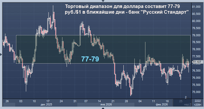 Торговый диапазон для доллара составит 77-79 руб./$1 в ближайшие дни - банк "Русский Стандарт" Курс доллара к рублю расчётный, фьючерс, вечный фьючерс и межбанк. Курс евро к рублю расчётный, фьючерс, вечный фьючерс и межбанк. Курс юаня к рублю биржевой, фьючерс, вечный фьючерс и межбанк. Торговый диапазон по доллару, скорее всего, составит в ближайшие дни 77-79 руб./$1, по евро - 91-93 руб./EUR1, полагает директор департамента операций на финансовых рынках банка "Русский Стандарт" Максим Тимошенко. "По окончании периода налоговых выплат триггеров для сильного ослабления рубля не наблюдается, - констатирует эксперт. - При этом в фокусе - перспективы ужесточения бюджетного правила, которое скажется на объемах продажи валюты со стороны Банка России. В центре внимания на мировом энергетическом рынке - обострение геополитической обстановки в ближневосточном регионе, способствующее росту цен на нефть. На стороне доллара - статистика рынка труда США, где количество первичных заявок на пособие