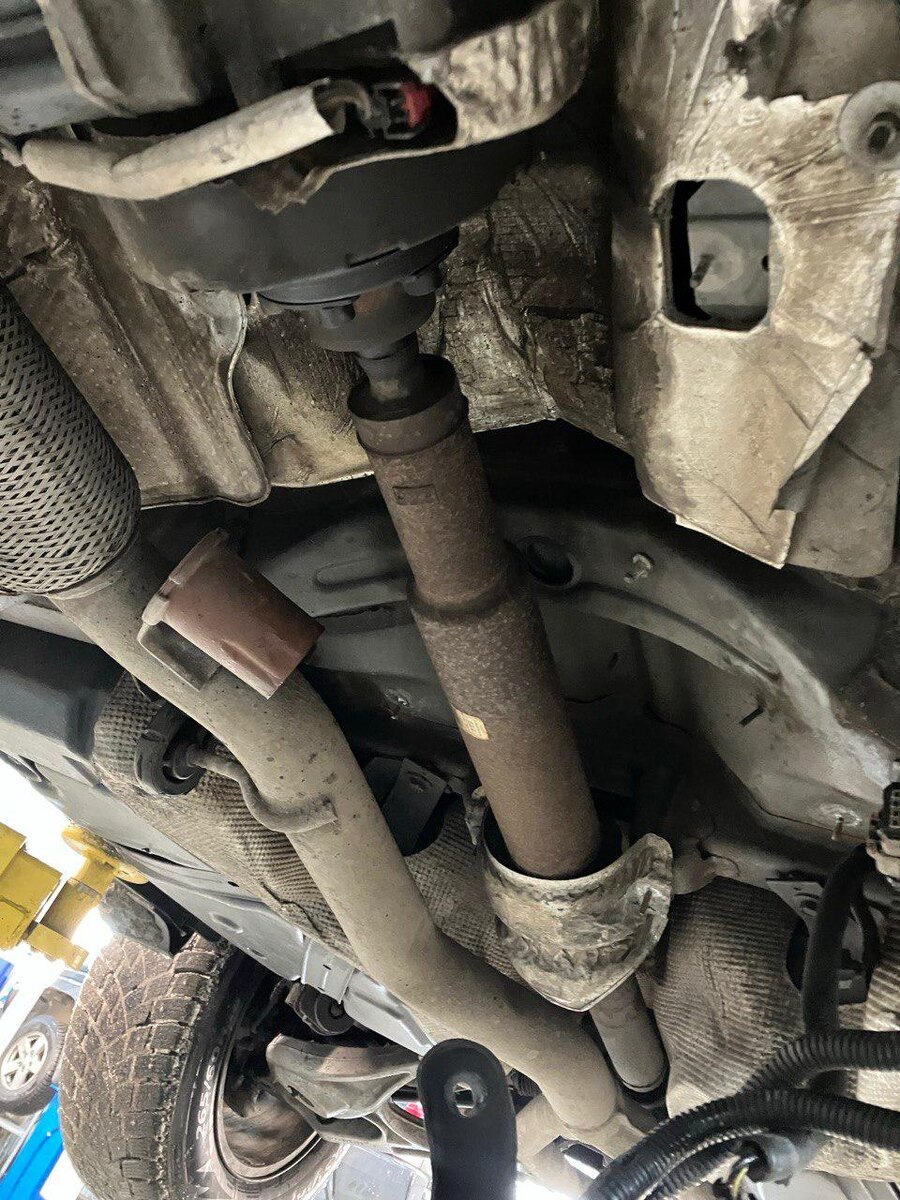 Стандартная ситуация — гул подвесного подшипника. Возможные пути решения: установка нового вала, замена подвесного и подбор качественной б/у детали. Конструкция данного вала предполагает, что для замены подвесного подшипника требуется замена центрального шлицевого соединения. Шлицевое отрезается и вваривается новая деталь. В данном случае мы предпочли приобретение оригинального б/у карданного вала от автомобиля с правым рулем. Как правило, такие детали находятся в лучшем техническом состоянии из-за небольших пробегов и более щадящих условий эксплуатации.