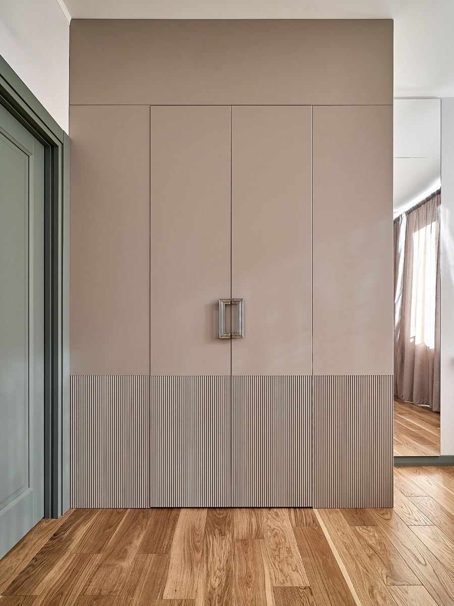 Встроенный шкаф с фрезеровкой «Геометрия 3»: снаружи минимализм — внутри гардеробная