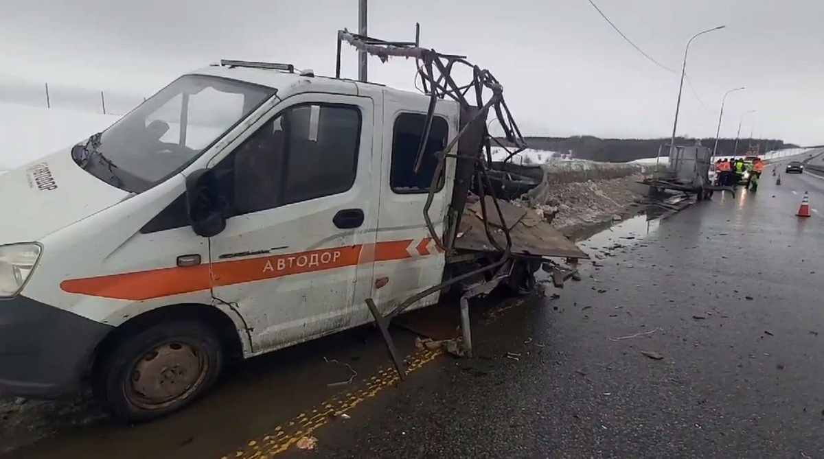 На 509-м километре трассы М-12 столкнулись служебная машина ГК «Автодор» и большегруз. Об этом сообщили в пресс-службе региональной Госавтоинспекции. Само ДТП произошло 1 марта в 14:33. По предварительным данным, 56-летний водитель за рулем грузовика MAN разогнался слишком сильно, в результате чего протаранил спецмашину дорожной службы. Удар пришелся на «Газель Next», которой управлял 61-летний сотрудник. Мужчину с травмами госпитализировали на карете скорой помощи. Все обстоятельства случившегося выясняются. 📸 Госавтоинспекция Нижегородской области