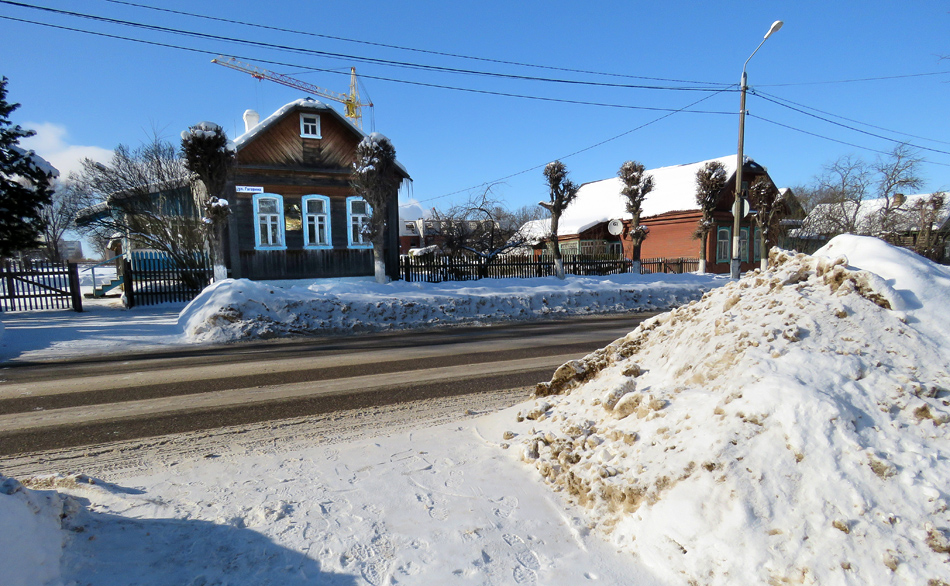 Потому и реплика изба в Клушино, что настоящую избу он увёз с собой да поставил вновь на северной окраине: теперь это улица Гагарина, а за избой вырос Северный район. Вот она, изба - слева, и официально этот отдел Мемориального музея называется Музеем школьных лет Гагарина: