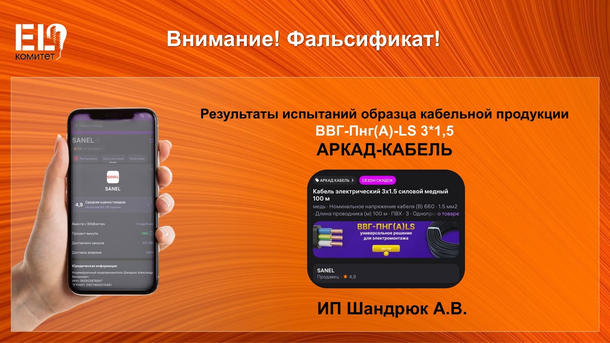 Внимание! Фальсификат! SANEL. WILDBERRIES Особое внимание в ходе мониторинга качества кабельной продукции на маркетплейсах EL-Комитетом уделяется выявлению и пресечению деятельности продавцов, которые демонстрируют значительный рост продаж за счет массового распространения фальсификата. Одним из таких магазинов является «SANEL» (ИП Шандрюк А.В.) на маркетплейсе WILDBERRIES, на «витрине» которого представлен широкий ассортимент фальсифицированной и контрафактной кабельной продукции. Данный магазин и его владелец ранее уже становились «фигурантами» судебных разбирательств в связи с реализацией фальсифицированного кабеля: в ноябре 2025 г. Дербентский городской суд Республики Дагестан по иску юридической службы EL-Комитета обязал ИП Шандрюк А.В. прекратить реализацию некачественного кабеля ТМ КОАКСИАЛ (вероятнее всего контрафактного) и взыскал с него более 250 000 рублей в счет удовлетворения исковых требований. ❌ Однако это судебное решение, как и предостережение со стороны Росстандарта,