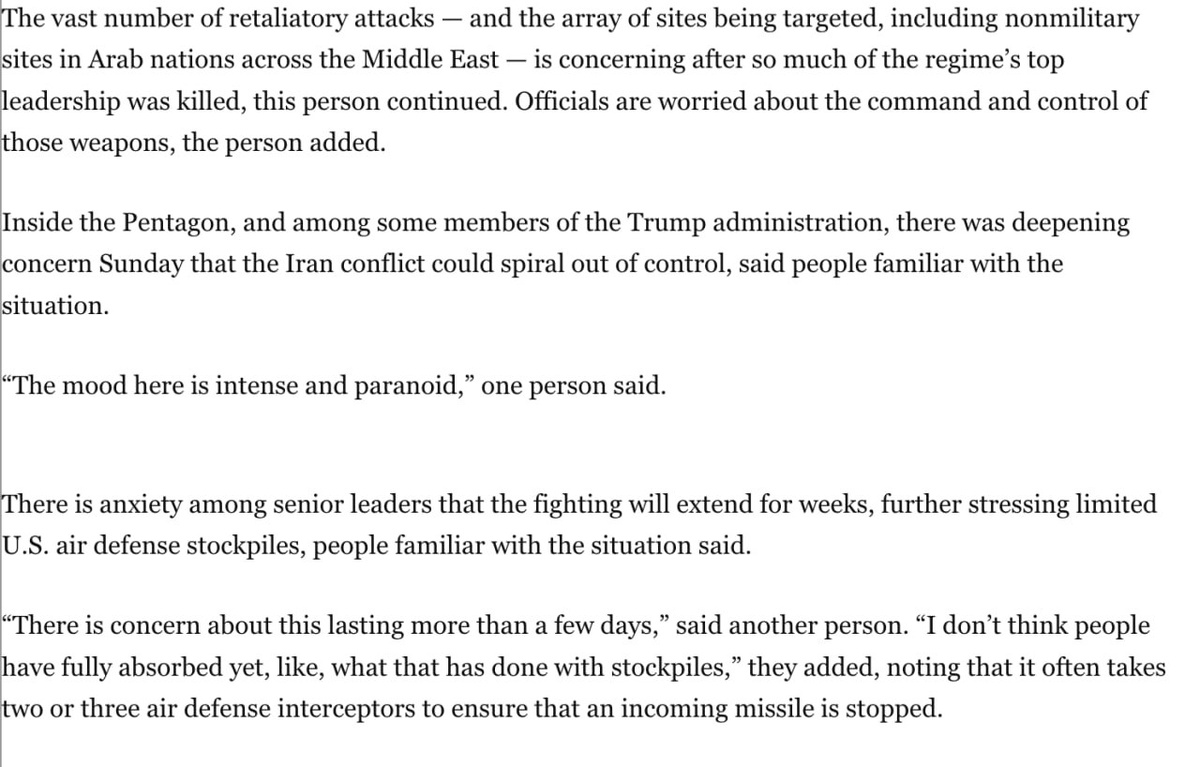 💗 Washington Post: в Пентагоне царит "напряженная и параноидальная атмосфера