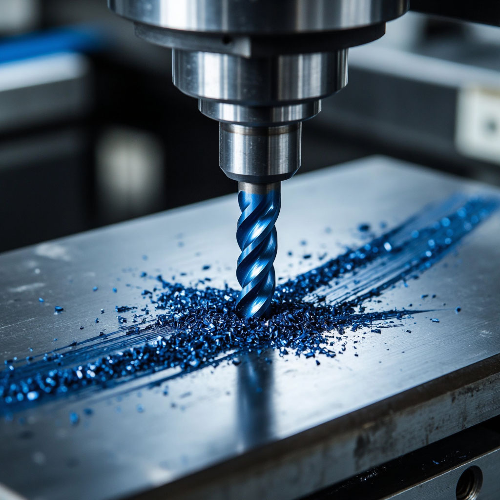 Для стали забудьте про дешевые фрезы по дереву или алюминию. Вам нужна твердосплавная фреза с покрытием (обычно это TiAlN или подобные — они такие темно-серые или бронзовые на вид). Покрытие позволяет инструменту работать при температурах, когда обычный быстрорез просто превращается в пластилин.
