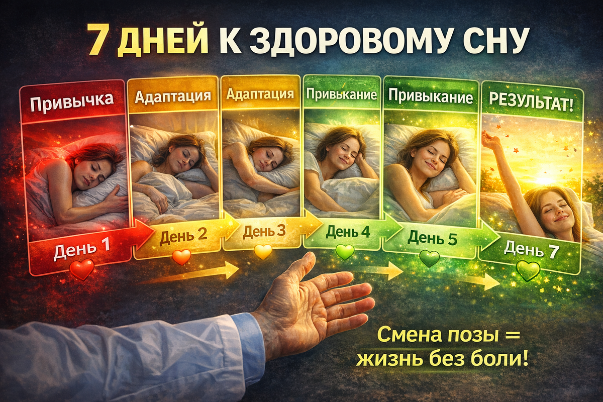 День 8-14: Если просыпаетесь на левом боку — не паника. Переворачивайтесь. Постепенно ваше тело привыкнет.