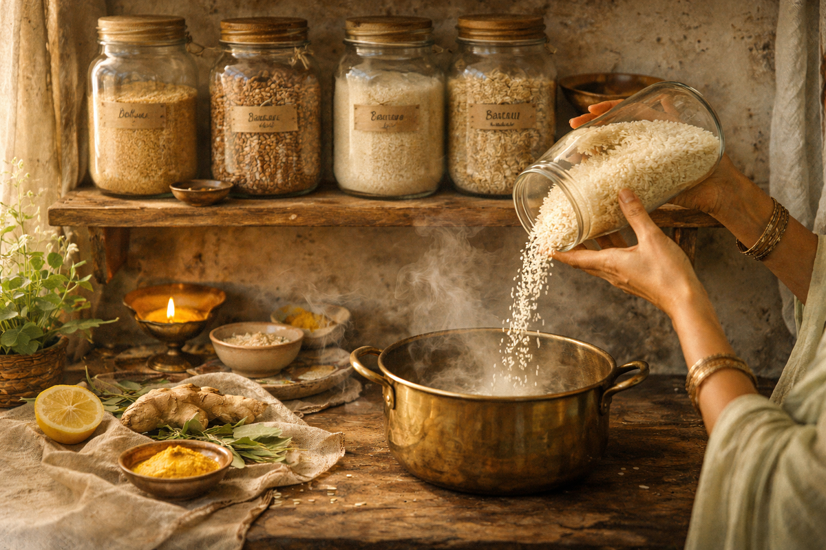 Тарелка каши с утра, снова каша на гарнир. Всё правильно, всё «полезно». Но к обеду — тяжесть, к вечеру — живот тугой, будто накачали изнутри. И непонятно откуда. Я веду школу аюрведы больше десяти лет. И один из самых частых запросов от учеников звучит именно так: «Я же ем правильно — почему мне плохо?» Ответ почти всегда один: крупа не та. Точнее — не та для этого тела, в это время года. Почему одна крупа питает, другая раздувает В аюрведе у каждого злака есть набор свойств: согревает или охлаждает, лёгкий или тяжёлый, сухой или влажный. Эти качества определяют, как крупа взаимодействует с пищеварением. Зимой тело работает в режиме накопления — медленнее, тяжелее. Пищеварительный огонь ослаблен. Если в этот период добавить охлаждающую и влажную крупу — она буквально тормозит переваривание. Отсюда тяжесть, отёки, ощущение, что еда «стоит». Про овсянку — честно Приготовленный овёс по своим аюрведическим свойствам охлаждающий, тяжёлый, обволакивающий. Он хорош при раздражённом желудке,