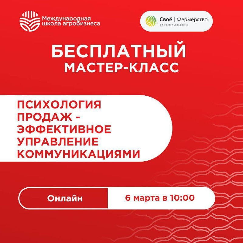 Тема: "ПСИХОЛОГИЯ ПРОДАЖ - ЭФФЕКТИВНОЕ УПРАВЛЕНИЕ КОММУНИКАЦИЯМИ" На мастер-классе вы узнаете как: • Налаживать взаимодействие и выстраивание коммуникации со сложными ключевыми клиентами • Четко определять психотип любых клиентов при общении • Адаптировать свое поведение под психотип ключевого клиента • Уметь презентовать продукт сложным клиентам и усиливать аргументацию, исходя из психотипа клиента • Подготавливать и проводить переговоры с учетом психотипа клиента для достижения своих целей переговоров • Сделать прирост объема продаж и валовой прибыли Спикеры: Сергей Профатилов — Сопредседатель Совета по развитию АПК при Уполномоченном по защите прав предпринимателей в г. Москве — Директор Международной Школы Агробизнеса — Эксперт по настройке бизнес-систем и внедрению HR — Управляющий партнёр GLOBALPAS — Создатель CRM REDBRIDGE и HR AGRO CLUB 🗓 6 марта 2026 в 10:00 📍 Формат: онлайн Присоединиться по ссылке Вопросы и уточнения: +7 925 672-60-89, zarbeev@globalpas.com 📍 Присое