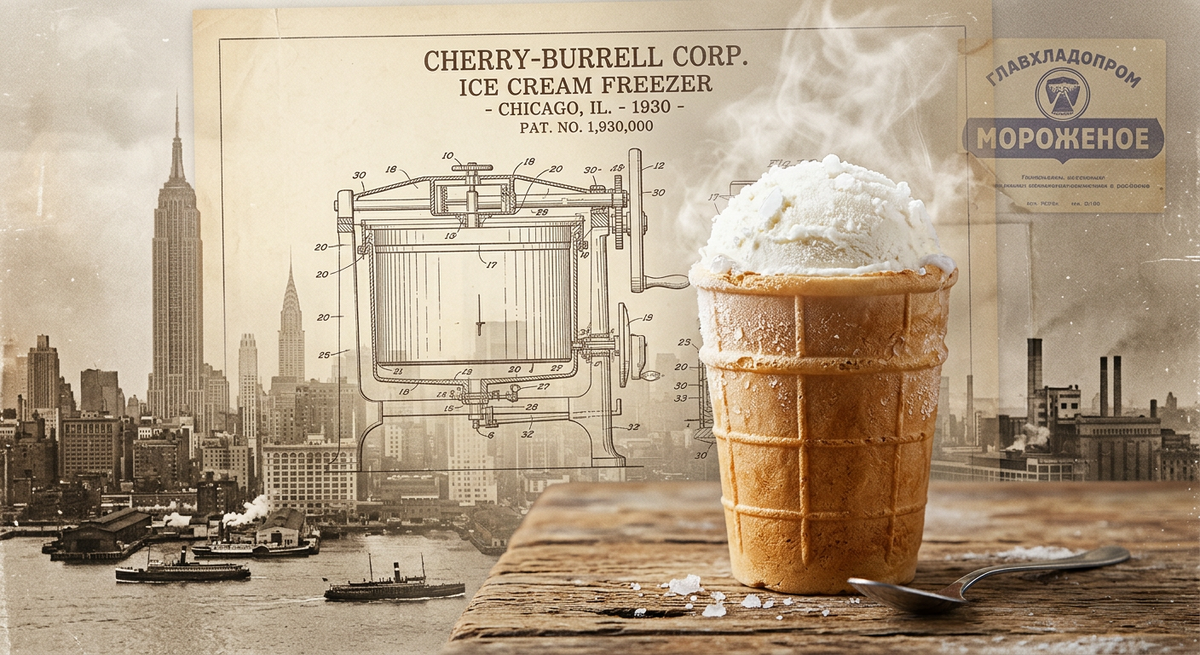 В августе 1936 года Анастас Микоян, нарком пищевой промышленности, отправился в США в трехмесячное турне. Это не была «дружеская поездка». Нарком ехал с конкретной целью: купить готовую пищевую индустрию. В Чикаго и Нью-Йорке Микоян увидел конвейерную мощь, которая в СССР отсутствовала. Мы не изобретали велосипед в секретных лабораториях. СССР купил у американцев всё: от чертежей фризеров до рецептур. В архивах сохранились чеки от «Cherry-Burrell Corporation». Фризеры модели V80, гомогенизаторы и даже линии по производству бумажных стаканчиков — всё это приехало из США. То, что миллионы считали триумфом социализма, на деле было результатом масштабного импорта. Капиталистический первоисточник в газетах тех лет не упоминали. Его заменили на формулировку «советское освоение передового опыта».