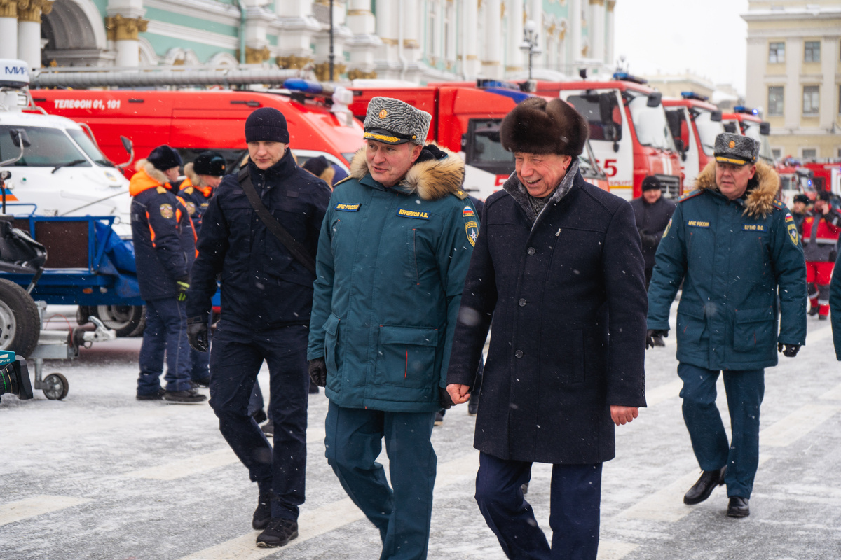 В рамках рабочего визита в Северную столицу глава МЧС России Александр Куренков совместно с губернатором города Александром Бегловым передали пожарно-спасательному гарнизону рекордное количество спецтехники. Петербургские спасатели получили на вооружение сразу 57 единиц техники различного класса и назначения. Церемония прошла в самом сердце города – на Дворцовой площади.