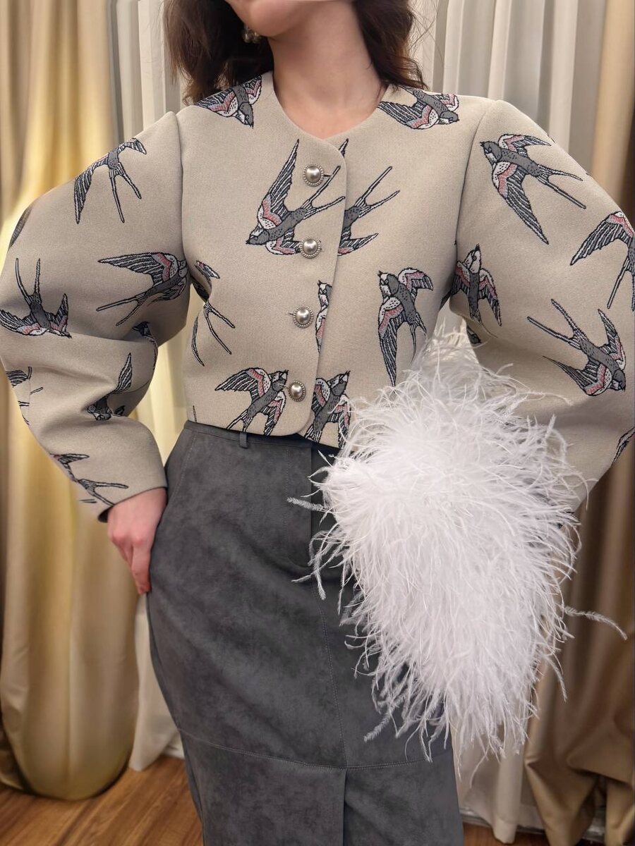 весенний образ: жакет с круглым плечом и нежным принтом 🕊️