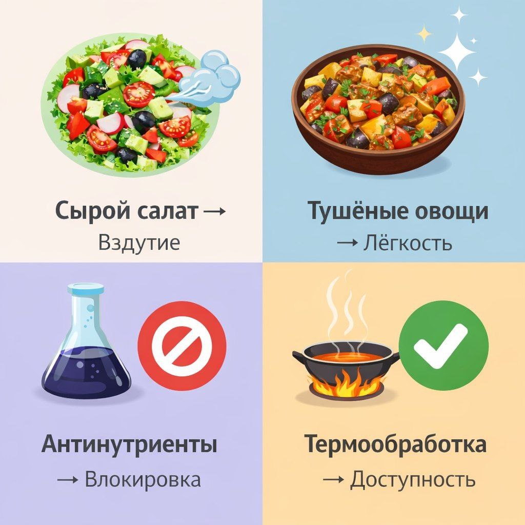🥗❌ Сырое — это яд? Почему «здоровые» салаты разрушают ваш ЖКТ