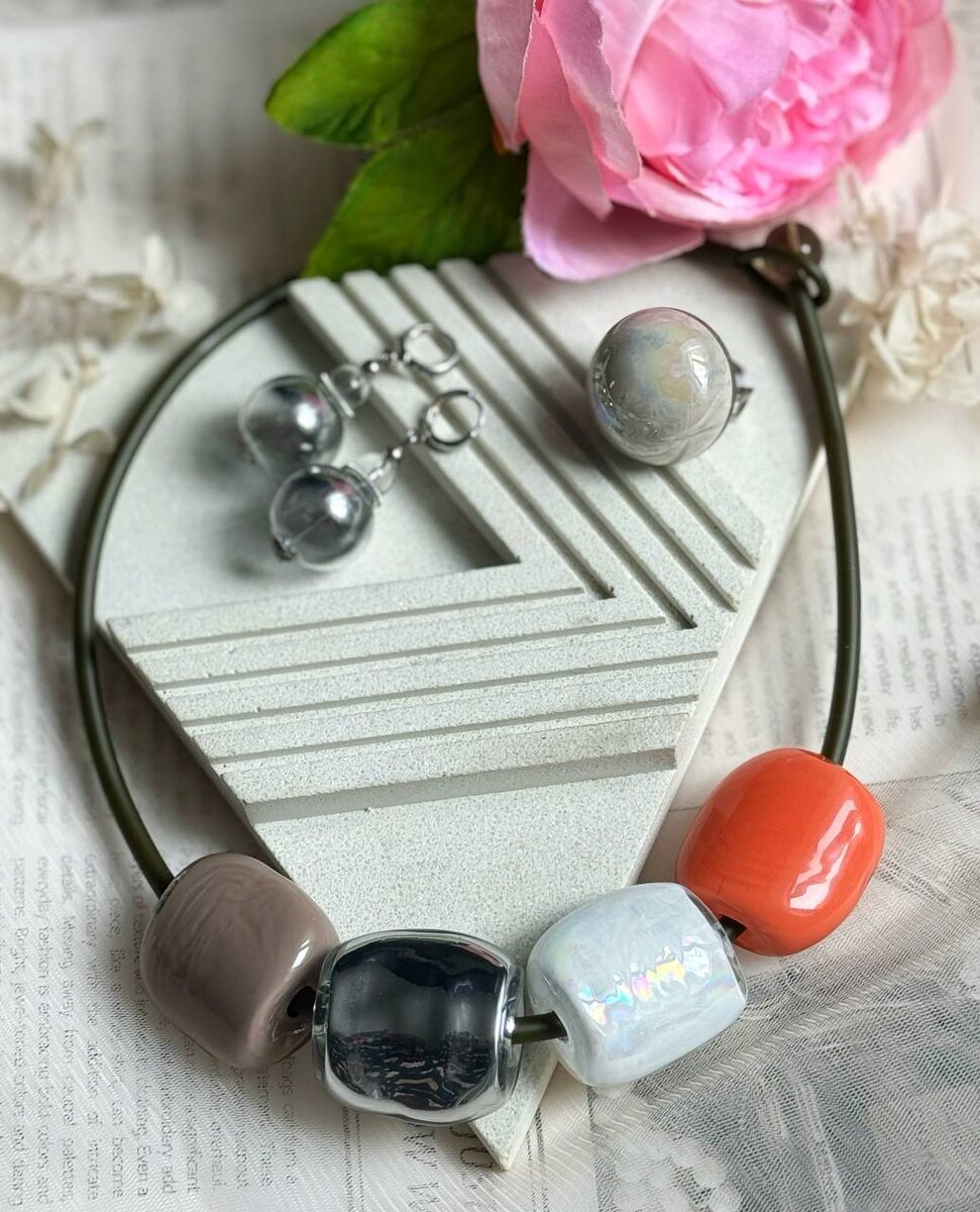 🔥 Иногда достаточно одного колье — и всё становится на свои места. Яркие бусины из муранского стекла словно маленькие арт-объекты: тёплый карамельный, глубокий графит, молочный с переливом и сочный коралл. Каждый оттенок живёт по-своему, но вместе они создают характер. Это украшение не про «скромно». Оно про уверенность и энергию. Для женщины, которая не боится акцентов и показать себя!⭐️ Колье 6000 Кольцо 4200 Серьги 3600 ✨Нажмите для заказа ✉️ Нажмите чтобы задать вопрос