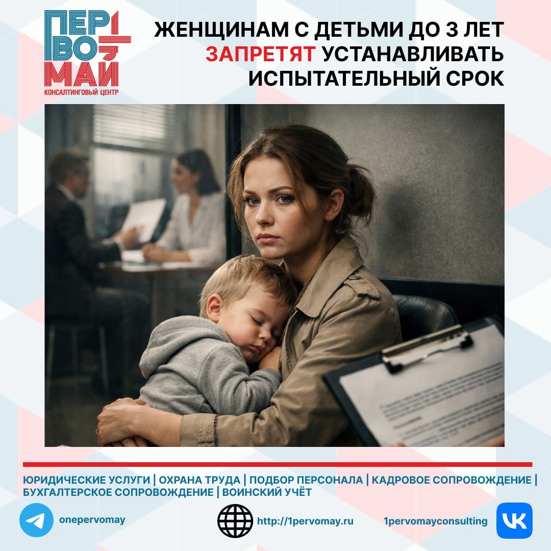 10 февраля Госдума приняла в первом чтении законопроект № 1097621-8: работодателям запретят устанавливать испытательный срок при приёме женщин с детьми до 3 лет. Сейчас эта норма действует только для матерей с детьми до 1,5 лет (статья 70 ТК РФ). ЗАЧЕМ ❓ Снизить стресс для матерей, облегчить возвращение к работе после декрета, бороться со скрытой дискриминацией. ЧТО БУДЕТ, ЕСЛИ ЗАКОН ПРИМУТ ❓ Включение условия об испытании в трудовой договор с матерью ребёнка до 3 лет станет нарушением трудового законодательства. Штраф по статье 5.27 КоАП. 🔔 Законопроект принят в первом чтении. Следите за обновлениями в нашем канале. 📞 +7(343)2530096 ➡️ Получить консультацию и оставить заявку ⬅️ 💬 info@1pervomay.ru