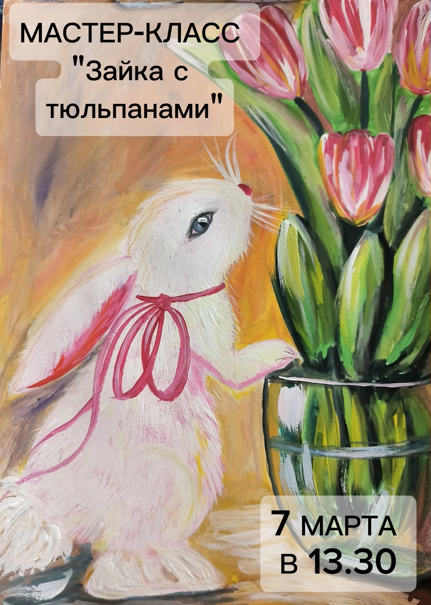 ✨ ✨ Приглашаем юных художников на волшебный мастер‑класс по рисованию «Зайка с тюльпанами
