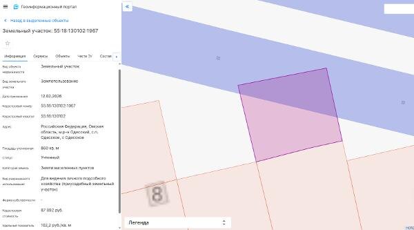 Название: Земельный участок с кадастровым номером 55:18:130102:1967 площадью 860 кв