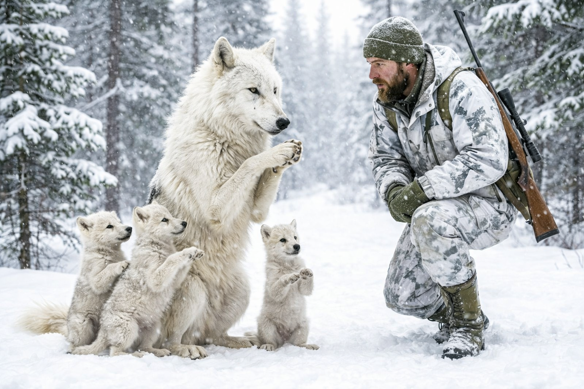Егор прожил в тайге всю жизнь, но такого не видел никогда. Белая волчица, похожая на призрака, преследовала его несколько часов. Она не нападала, не пряталась, а шла открыто, подставляя бок под выстрел. В ее янтарных глазах не было злобы — только бездонное, человеческое отчаяние.