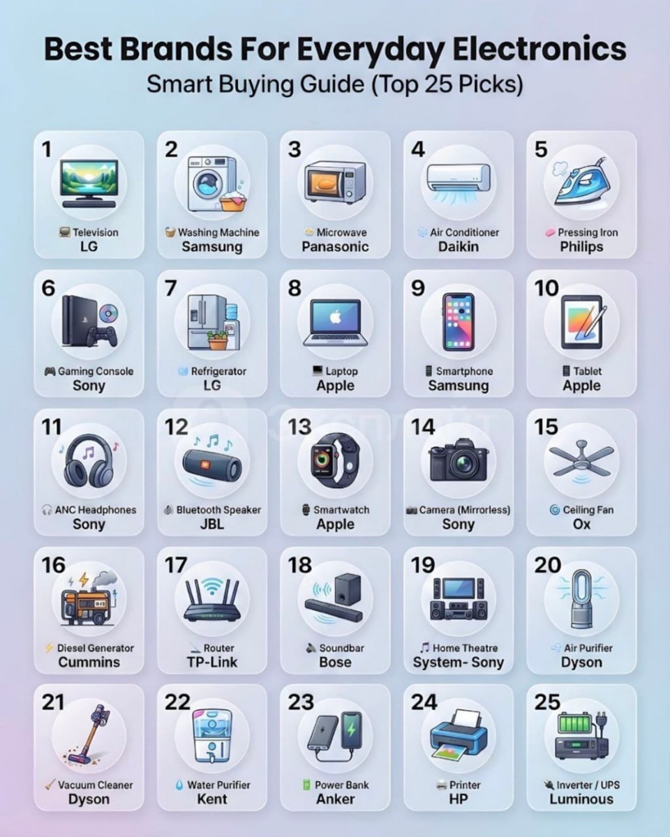 В сети появилась подборка лучших брендов техники в различных сегментах электроники.