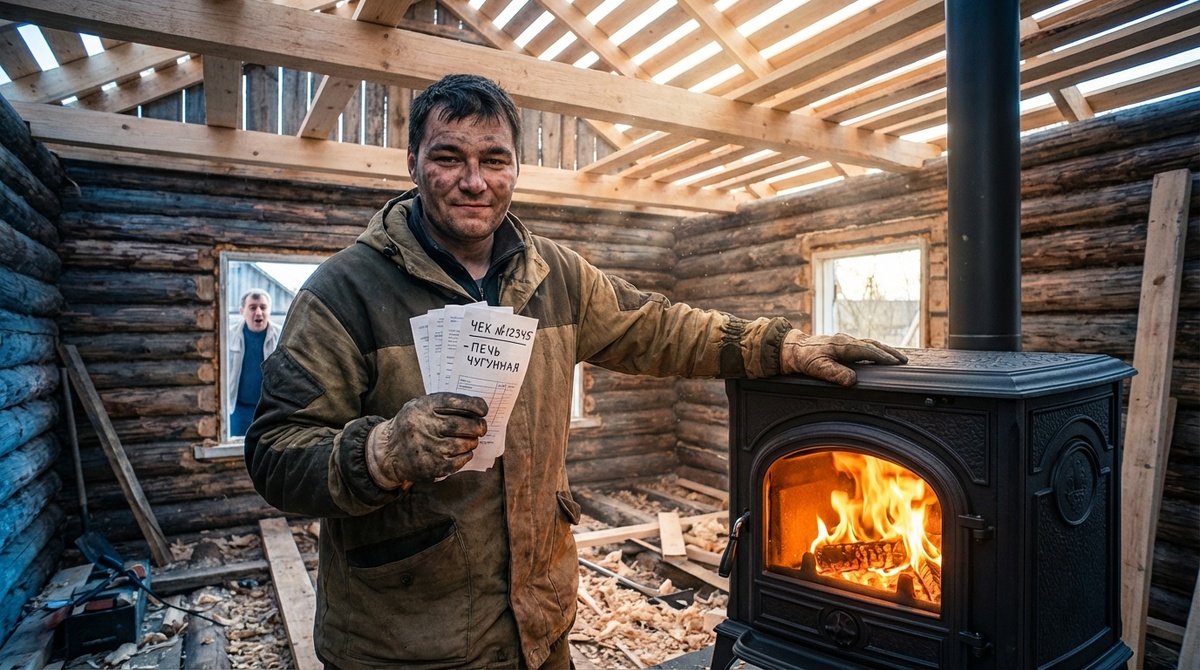— Из-под завалов, Вадик, — спокойно ответил я, похлопывая чугунный бок. — Прежние хозяева оставили. Настоящий чугун, сто пятьдесят килограммов. Печь-камин длительного горения. Стекло целое, колосники на месте, даже зольный ящик блестит.
