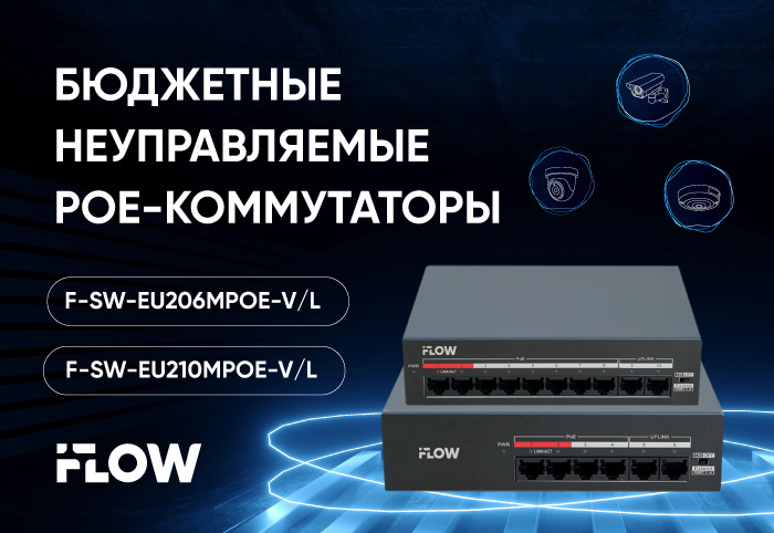 Знакома ли вам ситуация, когда для организации видеонаблюдения на простом проекте приходится покупать дорогой управляемый коммутатор только для того, чтобы протянуть сеть на 300 метров? Такое бывает часто, когда камера установлена на дальнем конце парковки, на въездной группе или в удалённом гараже за 150 метров от роутера, в то время как стандартный неуправляемый коммутатор стабильно работает лишь на первых 100 метрах кабеля. В итоге проект усложняется, растёт бюджет, а функции управляемого коммутатора используются лишь частично – ради одной задачи увеличения дальности линии. Именно для подобных задач разработаны неуправляемые PoE-коммутаторы iFLOW из линейки Lite: F-SW-EU206MPOE-V/L (на 4 PoE-порта) и F-SW-EU210MPOE-V/L (на 8 PoE-портов). Коммутаторы F-SW-EU206MPOE-V/L и F-SW-EU210MPOE-V/L реализуют принцип быстрого запуска (Plug & Play) – устройство готово к работе сразу после распаковки и подключения. Нет необходимости в веб-интерфейсе, сложных настройках VLAN, QoS, SNMP или регуля