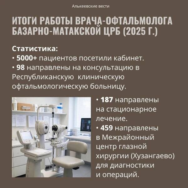 Врач проводит обязательный осмотр и стандартную диагностику, которая необходима для выявления различных нарушений. 👓Регулярные проверки зрения у офтальмолога необходимы даже при отсутствии тревожных симптомов. Берегите свое здоровье! | 📰Новости Алькеевского района📸 MAX-канал - подпишитесь. Вконтакте - подпишитесь. Сайт - посмотреть.
