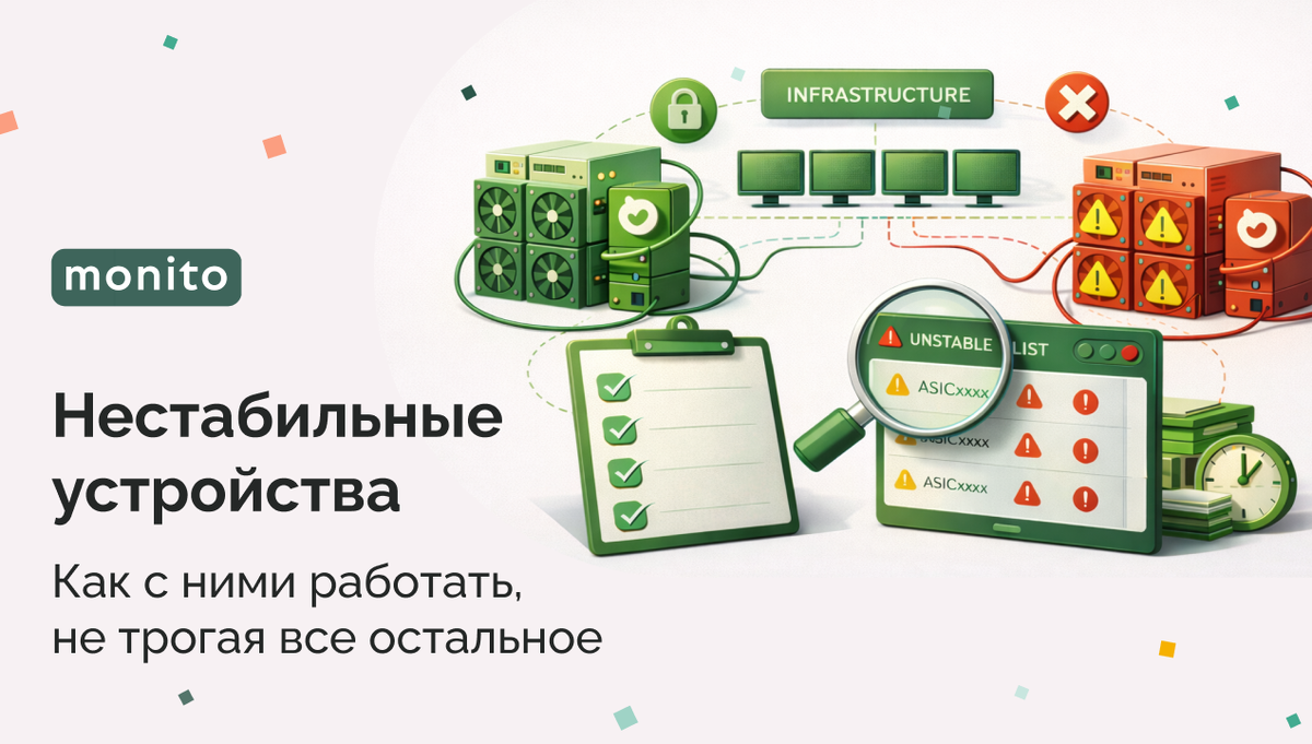 Идеальной инфраструктуры не существует. Где-то перегрев, где-то просадка по хешрейту, где-то периодические отвалы. Проблема начинается не тогда, когда появляется один нестабильный ASIC.