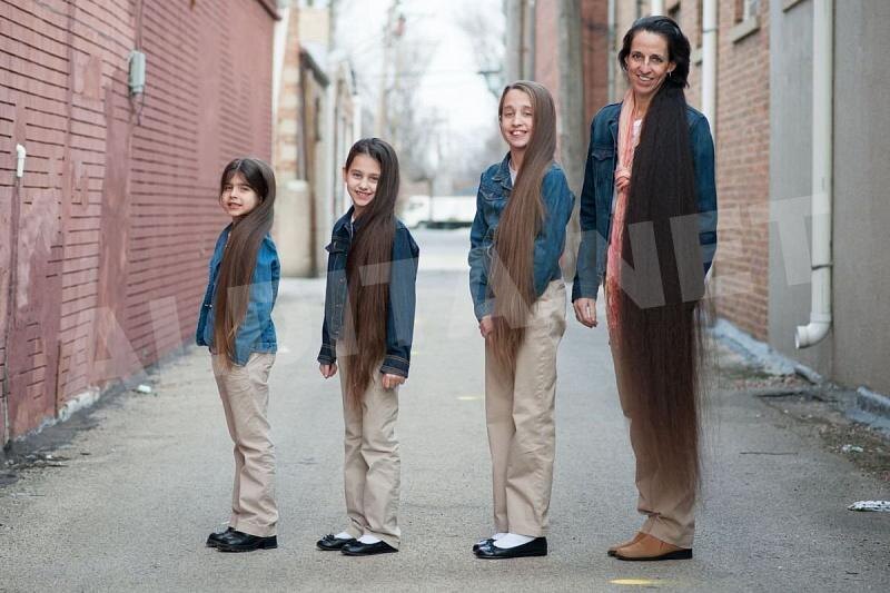 В американском штате Иллинойс, расположенном на Среднем Западе, проживает уникальная семья, некоторых её членов можно сравнить с персонажем из сказки — Рапунцель. Совокупная длина волос матери и трёх её дочерей приближается к 4 метрам и продолжает увеличиваться! Тере Лин Светлечич Расселл (Tere Lynn Svetlecich Russel) отказалась от стрижки в подростковом возрасте, и сейчас ей 43 года. Своими волосами она даже привлекла будущего мужа, который был впечатлён их красотой. Он и сегодня считает локоны жены семейной ценностью и продолжает ими восхищаться, как и в начале их отношений. У пары пять детей: четыре девочки и мальчик. Старшие дочери последовали примеру матери и также не стригут волосы. У 11-летней Кэллан они достигают 73 см, у 9-летней Сенделин — 72 см, а у шестилетней Чесни — 53 см. Только мужской потомок и младшая годовалая сестра Шапин не унаследовали эту особенность матери. Тере Лин на протяжении многих лет выигрывает в местном конкурсе «Самый длинный конский хвост» в городе Мор