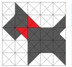 Вот с помощью таких схем легко построить для себя блок в нужном размере. Расчерчивается миллиметровка или любой лист бумаги на квадраты. Я обычно работаю с квадратом со стороной 30 см. Сторону квадрата делим на 5 или 6 частей, получается сетка, а потом заполняем её в нужную фигуру цветными карандашами для наглядности. Этот пёсик простой, состоит из полных квадратов и квадратов из треугольников. После этого, чтобы не запутаться, определимся сколько каких квадратов нам нужно и с учётом припусков составляем таблицу и приступаем к раскрою. Здесь особенно хорошо использовать полосы.вот такие блоки у меня получились