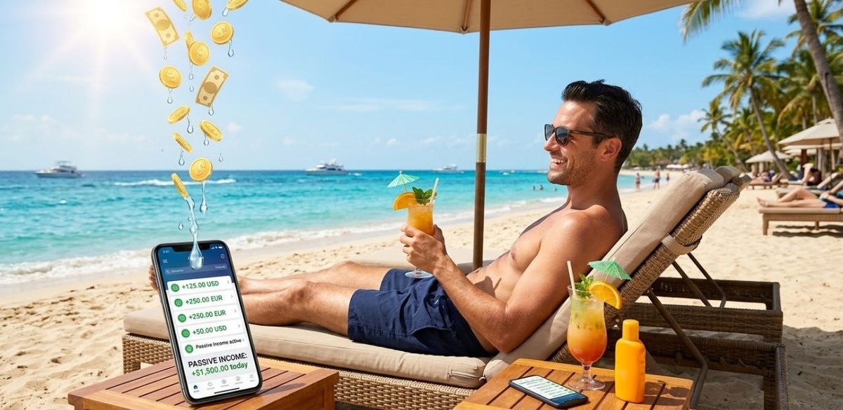 Когда я впервые услышал фразу «пассивный доход», в голове возникла картинка: лежу в шезлонге, солнце, коктейль, а деньги сами капают на счёт 💸